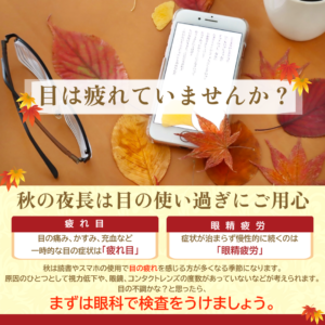 は、読書やスマートフォンの長時間の使用で目の疲れを感じる方が多くなります。